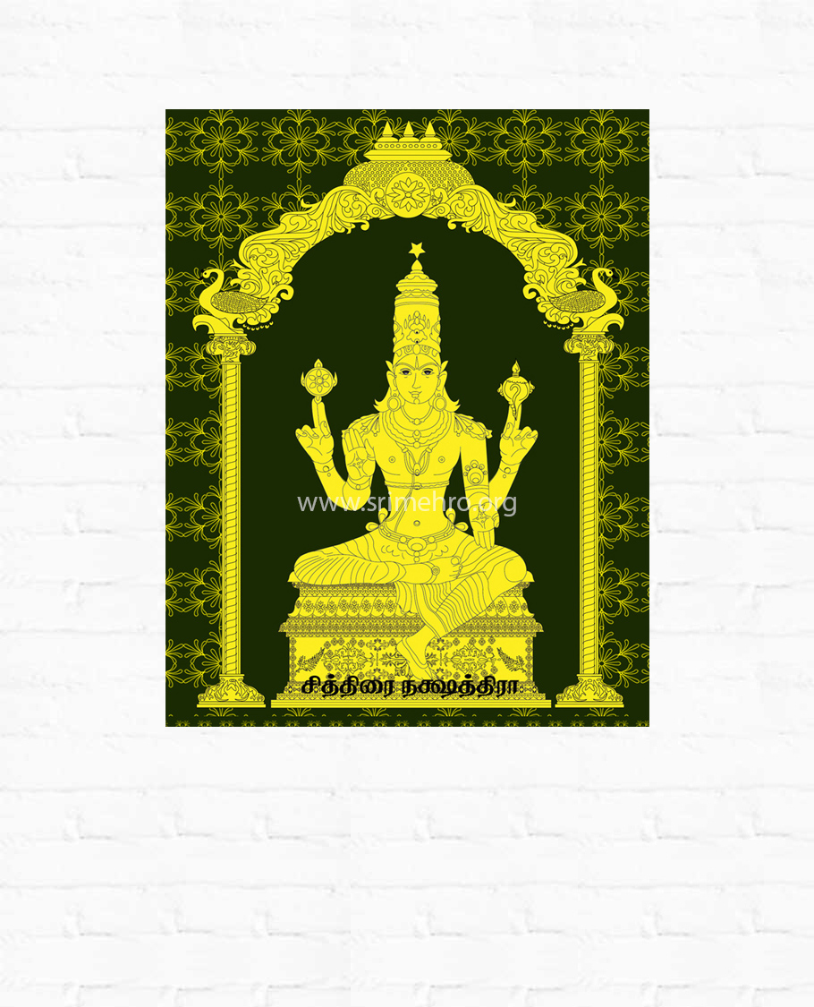 Chithirai Natchathiramconsists of a single star and appears like a Pearl in the sky. The Adhideva is ‘ Thuvashta’. He is commonly known as the other image of Lord Vishnu. And he is son of Sukkiran.