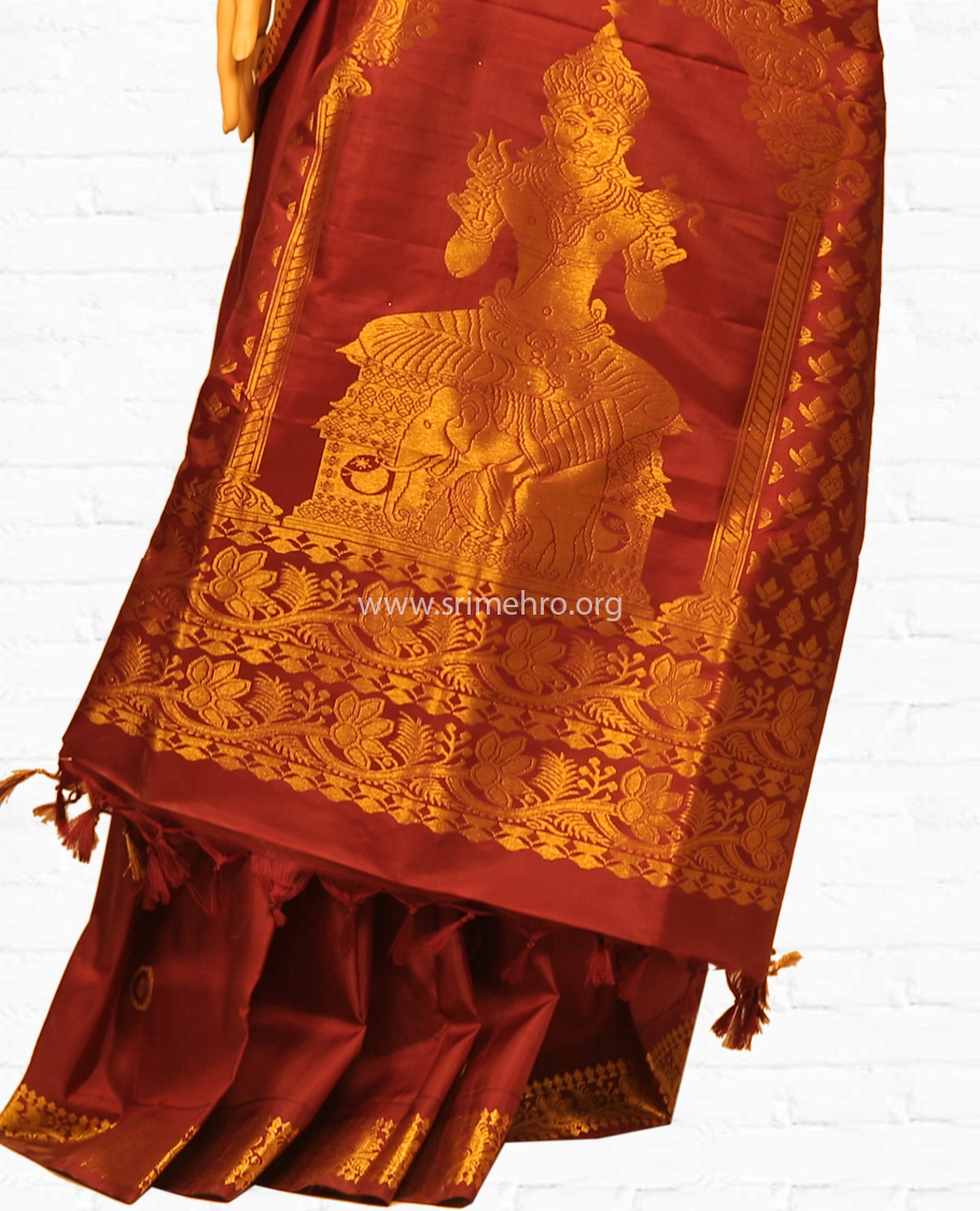 Pallu: Also self designed with an image of the Adhideva ‘Indhiran’ with his white elephant. And the symbol of the Natchathiram ‘Circle’ also in peedam at right and left sides of the bottom portion.
