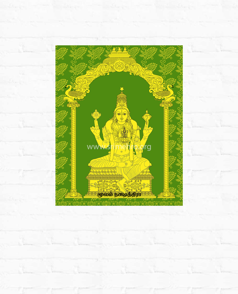 Moolam Natchathiram consists of nine stars and appears like ‘Tail of a lion ’ . The Adhideva is ‘Niruthi’. He is one of the ‘Ashta thikku balagars’. And he is the Lord of south west direction.