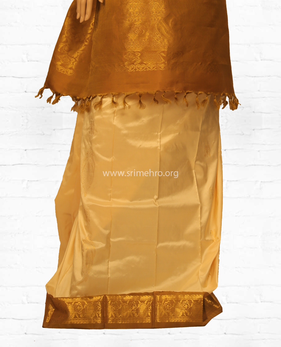 Pallu: Also in green colour with an image of Adhideva Lord Brahma Devan. And the symbol of this Natchathiram ‘‘Cart and its Wheel’’ also in peedam at right and left sides of the bottom portion