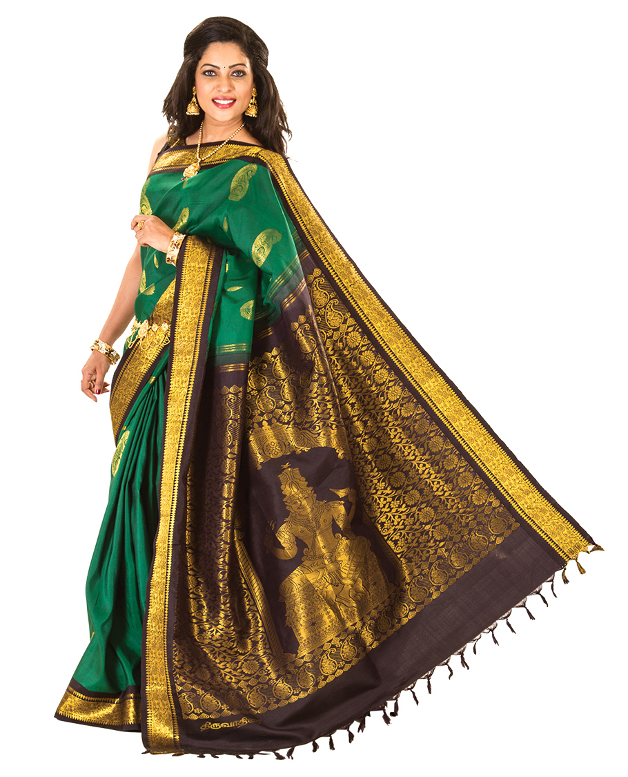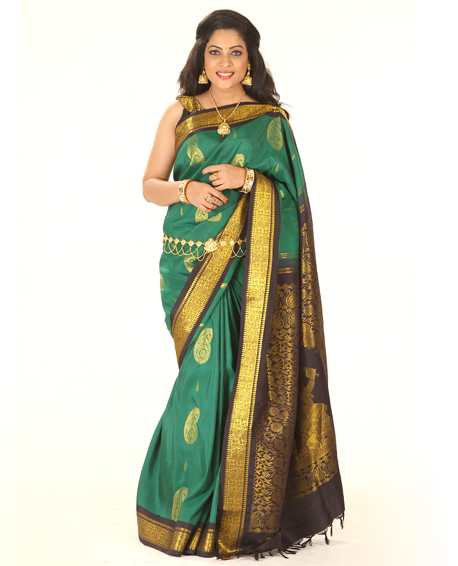 The colours and images preferred in this silk saree are specially to give more health, wealth and prosperity as per the astrological terms.